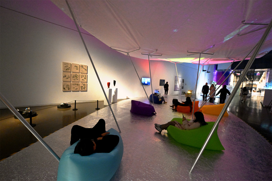 426件/组入展作品分为艺术、设计两大篇章,以艺术、衣裳、食器、住居、行旅、娱乐和国际特邀七大主题板块呈现。“衣食住行娱”这五种日常,构建了可感、可游、可栖的未来生活境界,构成了一幅融合东方智慧和未来想象的立体长卷。