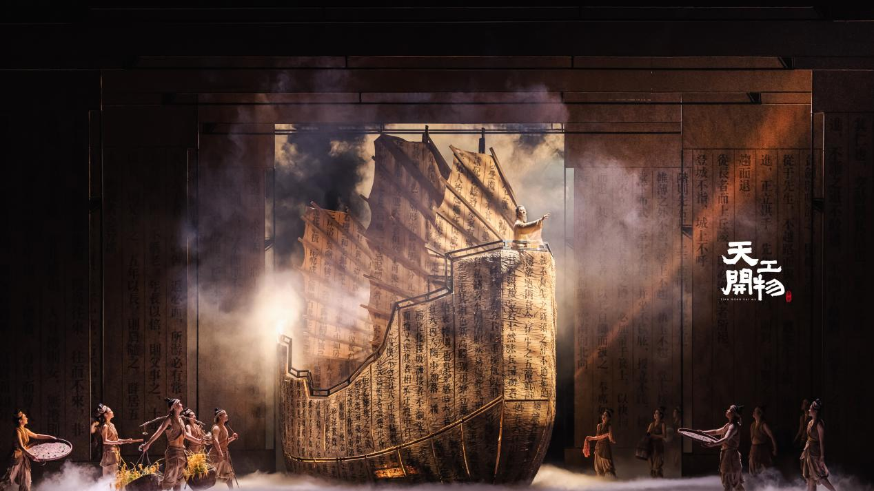 这部以《天工开物》为题材的舞剧,以宋应星“赶考”“著书”“山河”等篇章为线索,通过舞蹈、影像和现代科技的结合,让《天工开物》这本记录古代科技与工艺的百科全书“活”了起来,重现了中国古代劳动人民的智慧与创造。